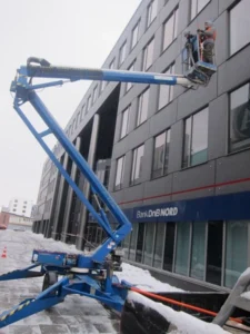 Model 170 HDE wybieramy do zleceń, gdzie potrzebny jest duży zasięg pionowy i poziomy — wyższe budynki wielorodzinne, obiekty przemysłowe, kościoły z wysokimi nawami, maszty i kominy. Zasięg boczny 9,5 m pozwala pokryć szeroką strefę roboczą bez przestawiania maszyny, co znacząco skraca czas realizacji.